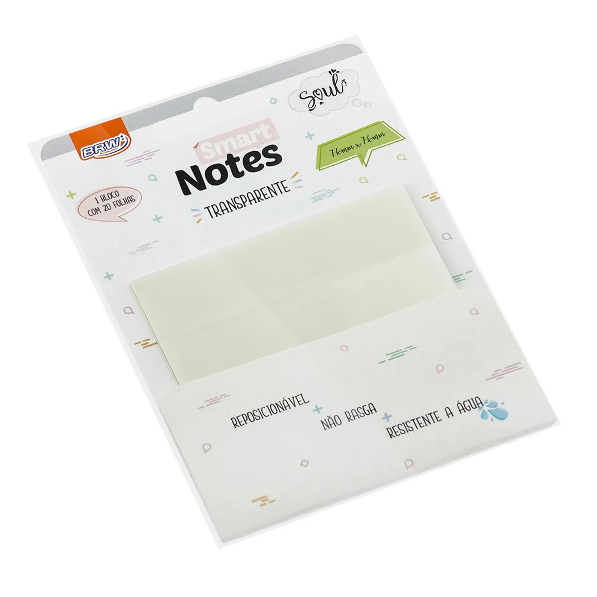 Os Smart Notes Transparentes BRW são perfeitos para quem ama praticidade e um visual moderno. Com tamanho 76x76mm, permitem escrever lembretes, marcar páginas ou criar anotações sem esconder o que está por baixo.